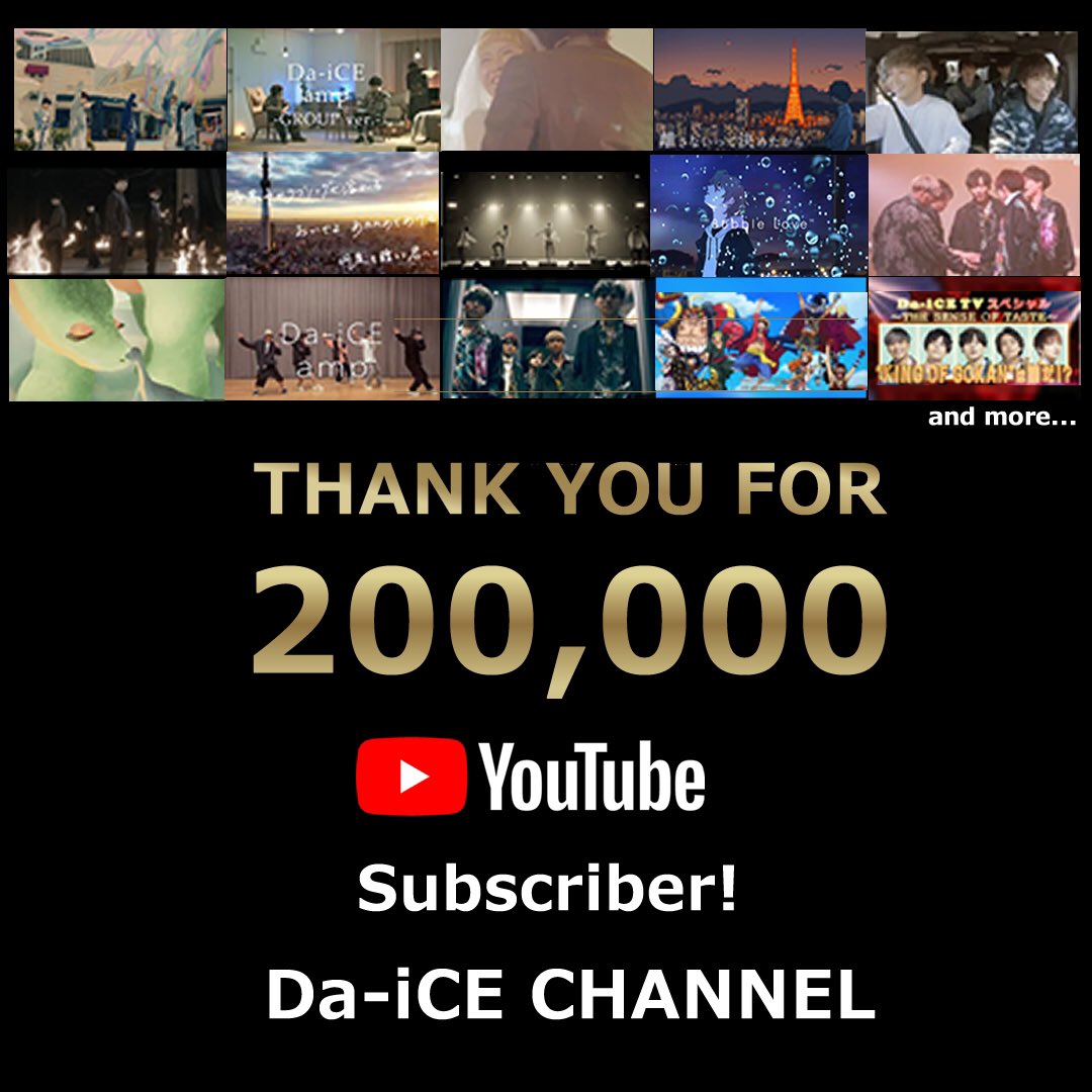 Da-iCE Official YouTubeのチャンネル登録者数が、本日20万人を突破しました!!