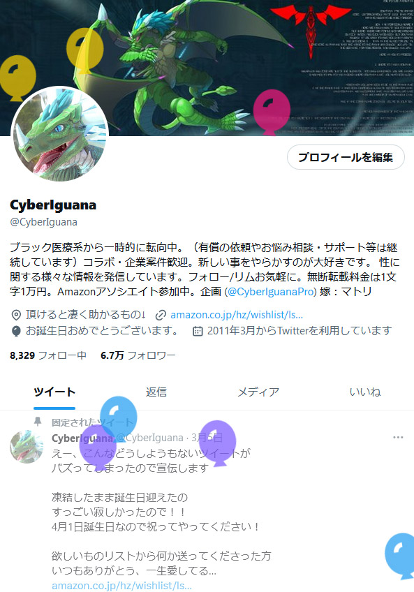サイバーイグアナです。Twitterの運営変更による突然の改悪や一連のグダグダが原因でユーザー側が理不尽に凍結して仕事ができなくなったり損失を被ったり、原因不明の凍結を日々恐れながら使うプラットフォームはSNSとして非常にダサいし末期的だと思っています。