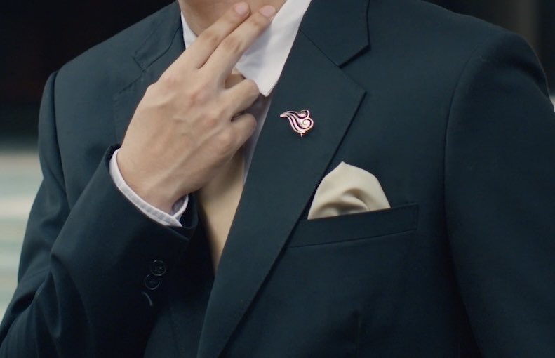 จริงๆ เข็มกลัดอันนี้ได้แรงบันดาลใจมาตอนที่ถ่ายไพลอตกันอยู้่ ตอนนั้นยังทำบทพาร์ทพระพายสกายไม่เสร็จ แล้วมันมีจังหวะที่คุยกันเรื่องเข็มกลัดติดสูท เมย์แวบขึ้นมาบนรถตู้เลยตั้งแต่เขียนฝ่ามือยาวมาถึงการทำเข็มกลัดที่อยากให้อยู่บนอกตลอดไปแหละ ><
