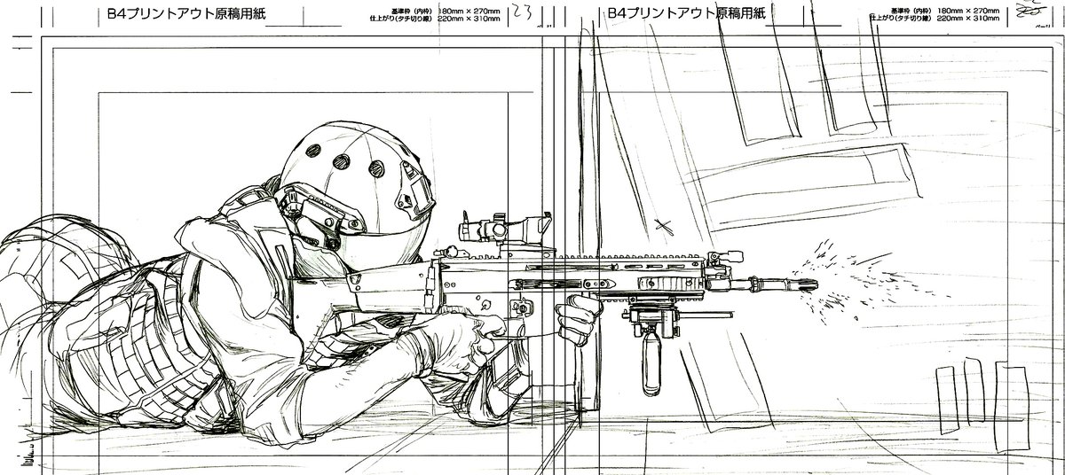 対亜の適当な仮デザイン(2巻時くらいに描いた) 初期はファンタジー色が強いためSF装備にした 漫画の「現実のあんばい」を徐々に自分に合った濃度にしていったため登場時にはあの装備になった 5巻時点で出たSATのデザインはかなり現実と違う 対亜もSATも気に入っますけどね、ダサい感じのデザインが