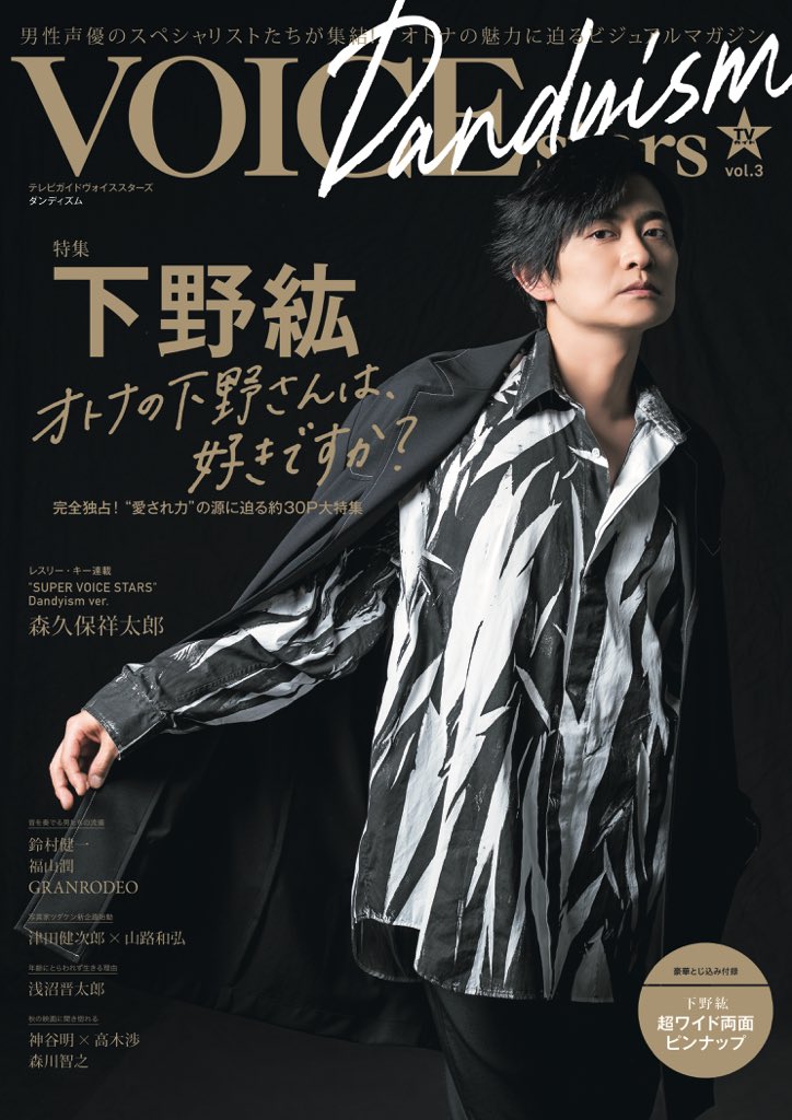 【「#TVガイドVOICESTARS Dandyism vol.3」10/4発売】#下野紘 さん(@shimono_kousiki)の表紙号ですが、発売に先駆けて編集部に見本誌が届きました。取材にご協力いただいた皆様ありがとうございました。気になる中身も本アカウント@TVguidePERSONで随時UPするのでお楽しみに。zasshi.tv/products/13274/