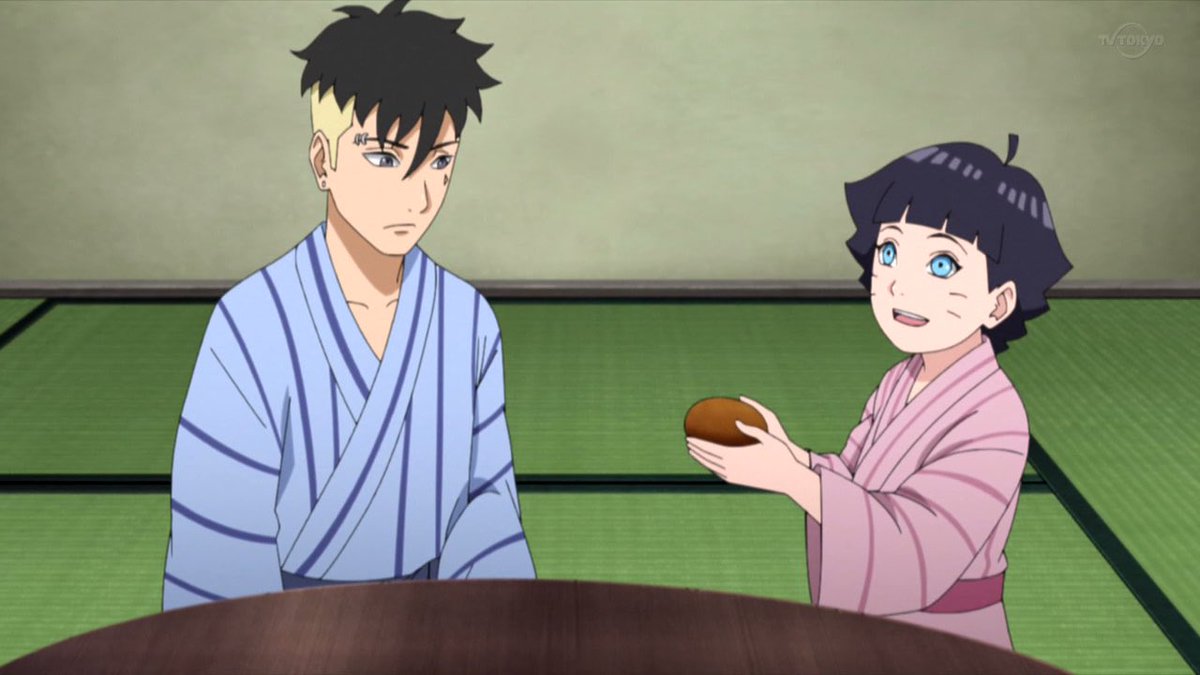 Himawari is too cute🌻. Offering kawaki food and refereeing the table tennis match😂 #boruto