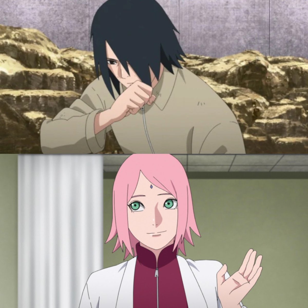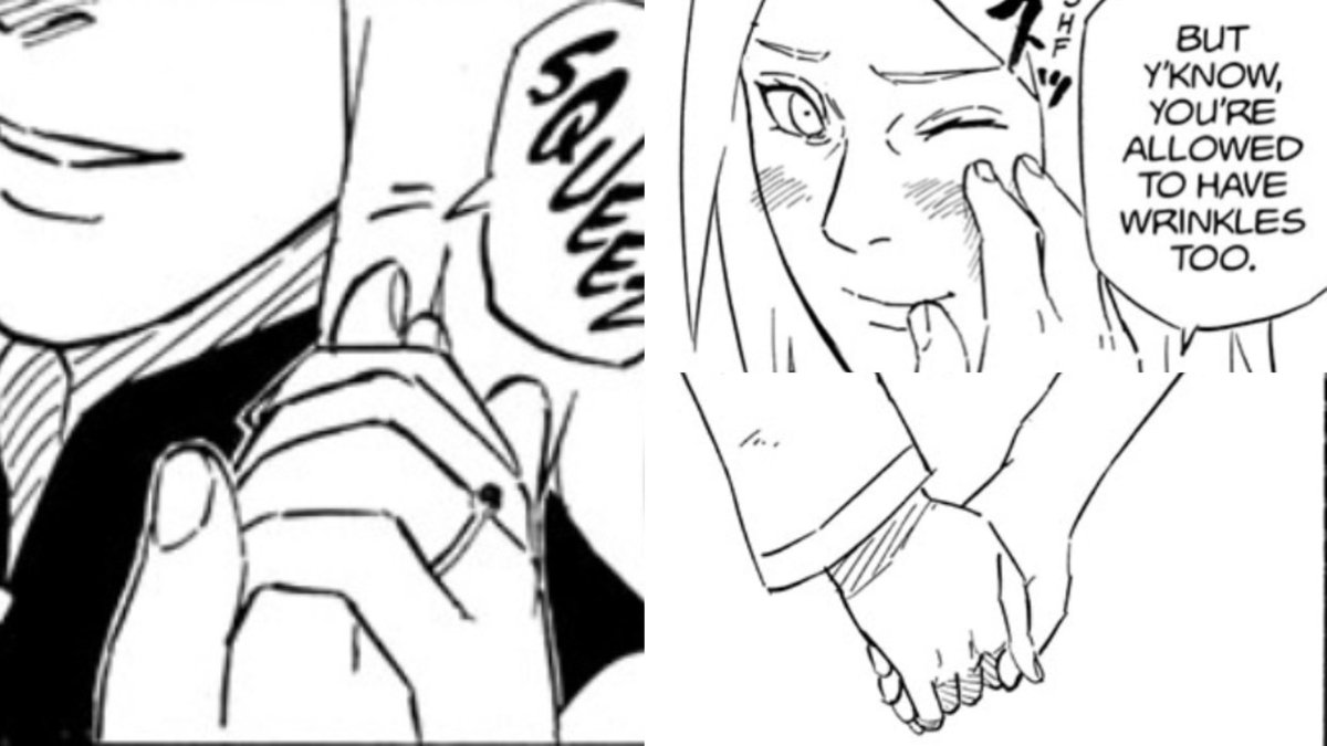 Sasuke creases sakura’s cheeks, Sakura hold Sasuke’s hand, then both proceed to hold each other’s hands. #SasukeRetsuden