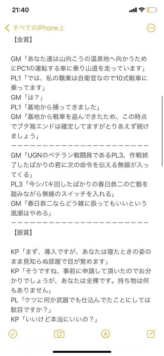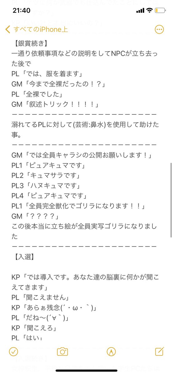 TRPGで実際に見たこと・聞いたことのある面白いPC選手権
