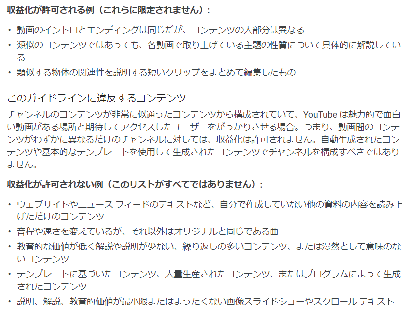 理由が『繰り返しの多いコンテンツ』とのことですが規約を見る限りではこれらに違反するような動画は一切作っておりません。