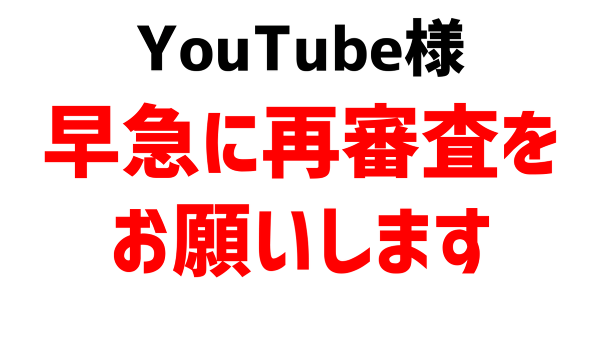 youtube運営様、どうかすぐに再審査していただけることを願っています。