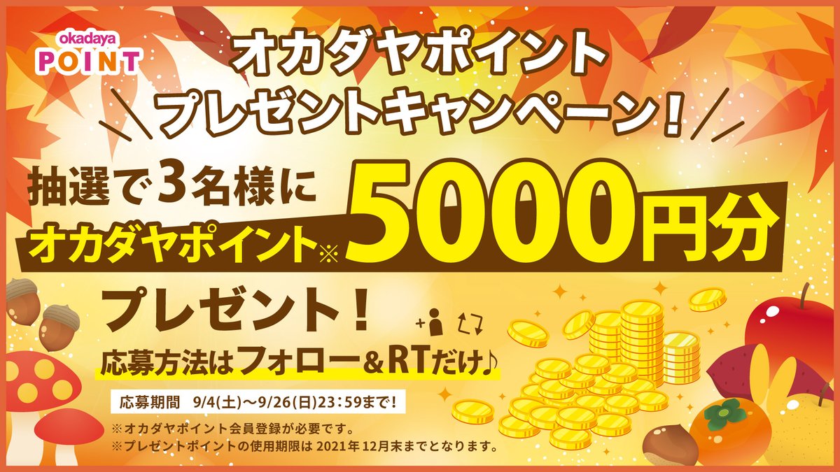 オンラインショップでも使える #オカダヤポイント 5,000円分⚡