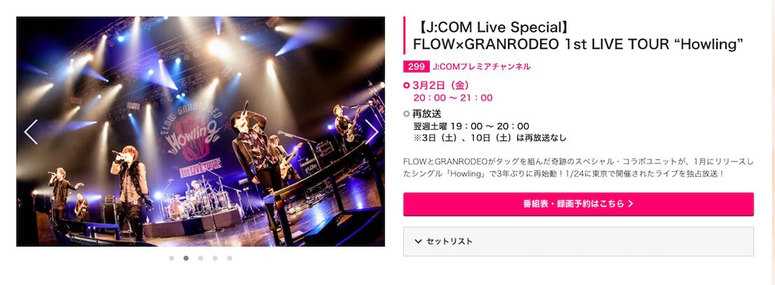1/24にZepp Diver Cityで開催されたFLOW×GRANRODEO 1st LIVE TOUR “Howling” 東京公演の模様がJ-COMプレミアチャンネルにてテレビ独占放送!あのアツい一夜が再び蘇ります!お見逃しなく!!!