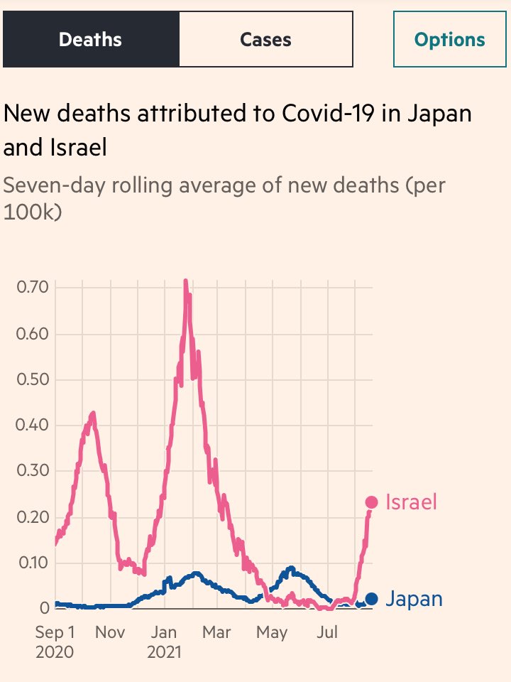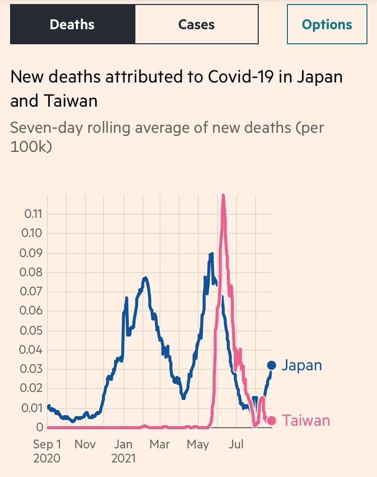 直近で見ますと感染爆発国ですが、主要先進国や主要感染対策国と比較すると最も死亡者が少ない国ということも重要です。感染者が多く出ても医療でねじ伏せる感じですね。医療関係者に感謝です🙏