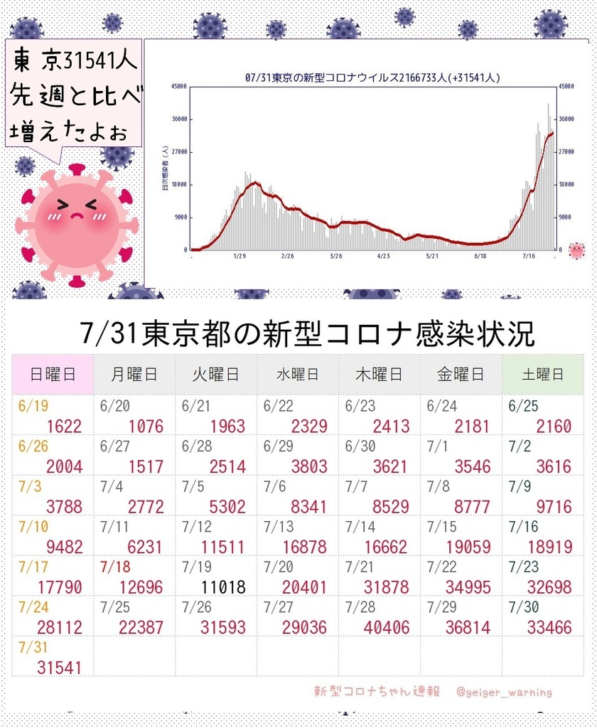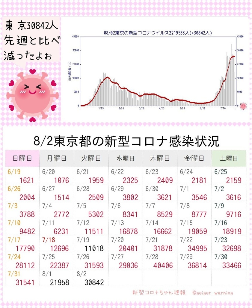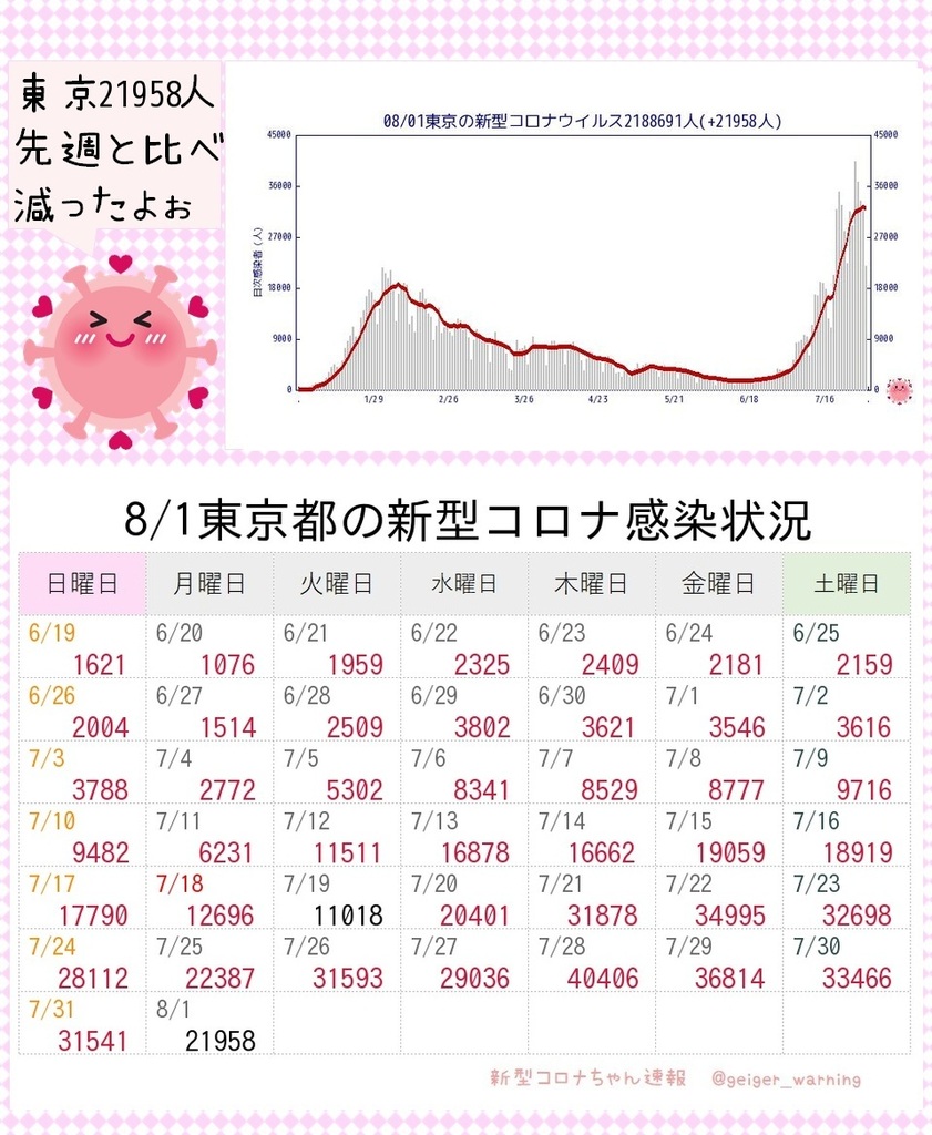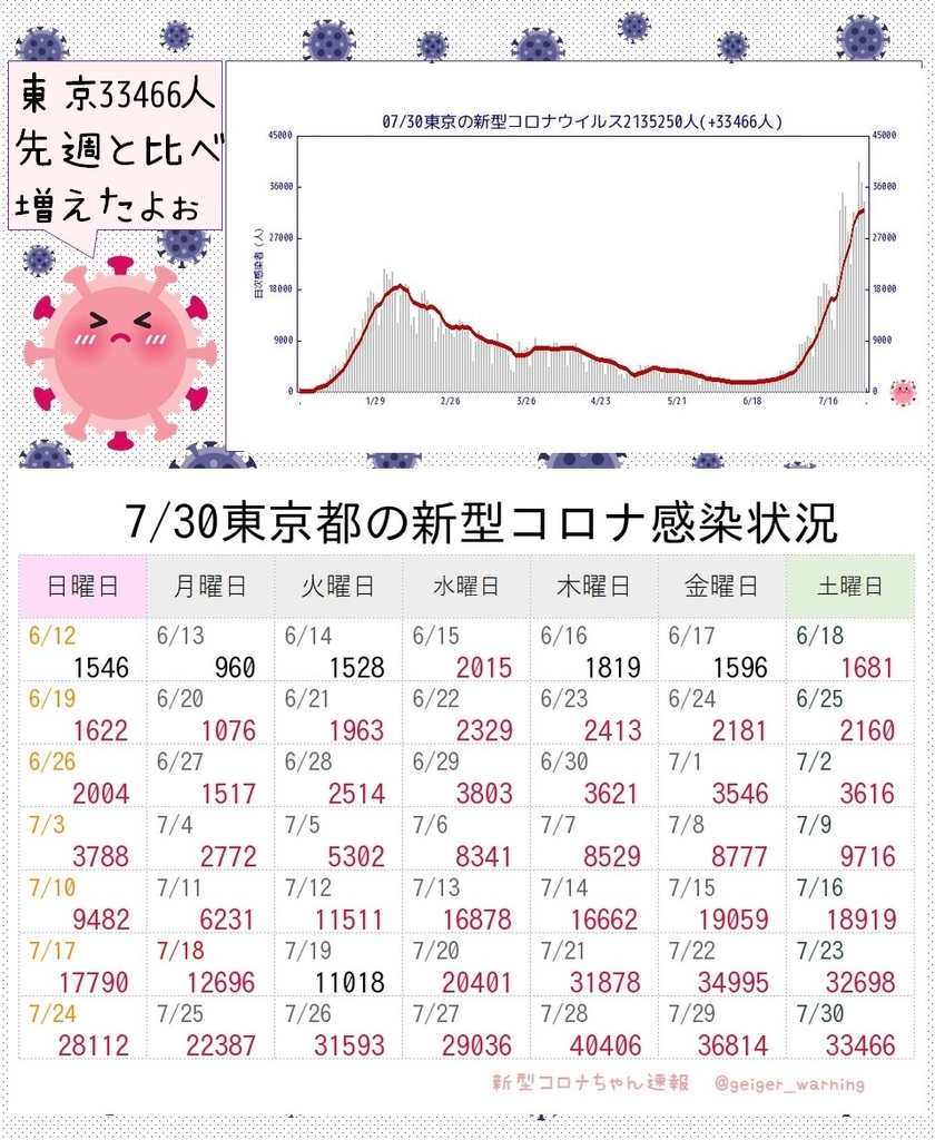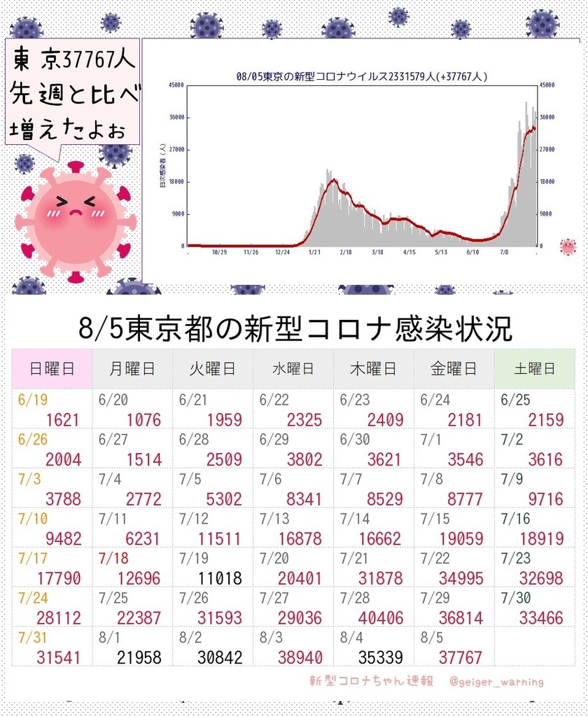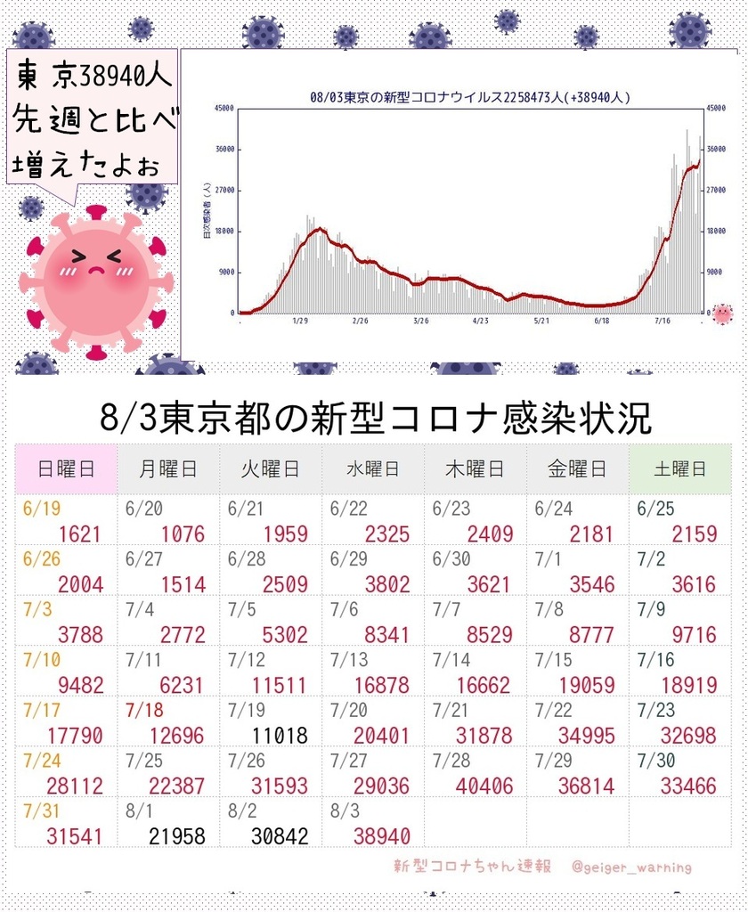 【ひとりごと】東京前週と比べて増えた😿