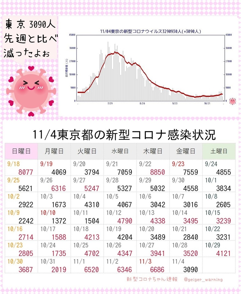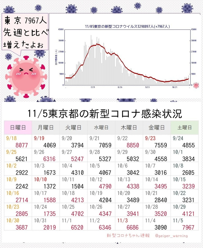 【ひとりごと】東京前週比1.7倍増‼️