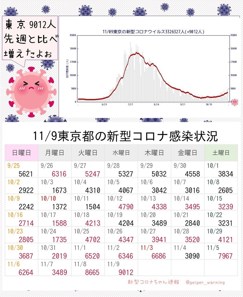 【超速報】新型コロナ感染状況(11/9)