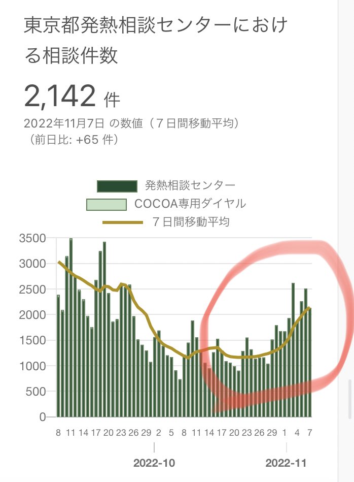 ヤバい😿1.7倍が続くと火曜日にまた1万人超えてしまいます。ハロウィン🎃の答え合わせは、20歳未満の比率を見ればわかるかもです。今の所大きな変化無しです。今後、注目ポイントです。