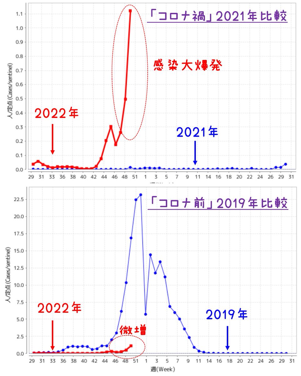こないでぇ😿2019年インフル流行時期と比べるとまだ誤差程度ですが、感染爆発すると一気に広がりますので要注意です。コロPは年末激務のため先月末にインフルワクチン接種しました。お気をつけて🙏