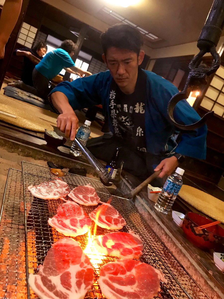 岩泉商工会ノ方ガ龍泉洞黒豚ヲ焼イテクレテイマス!(¬з¬)