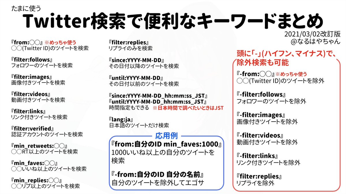 便利すぎる検索コマンド ツイッタラー向け完全保存版「Twitter検索で便利なキーワードまとめ」 nlab.itmedia.co.jp/nl/articles/21… @itm_nlab