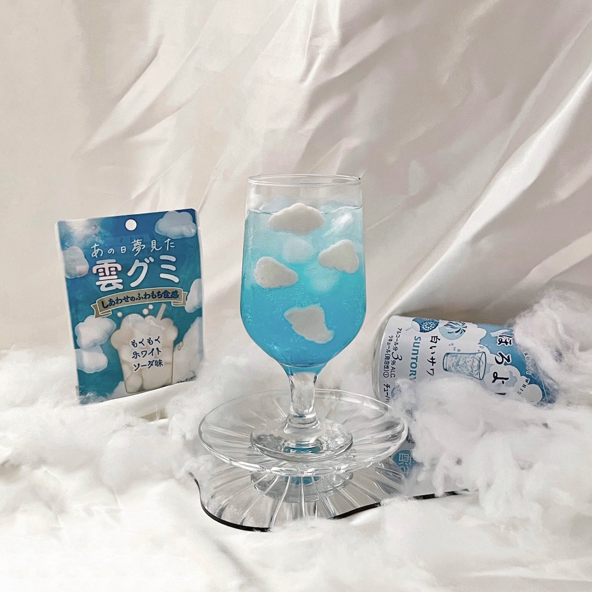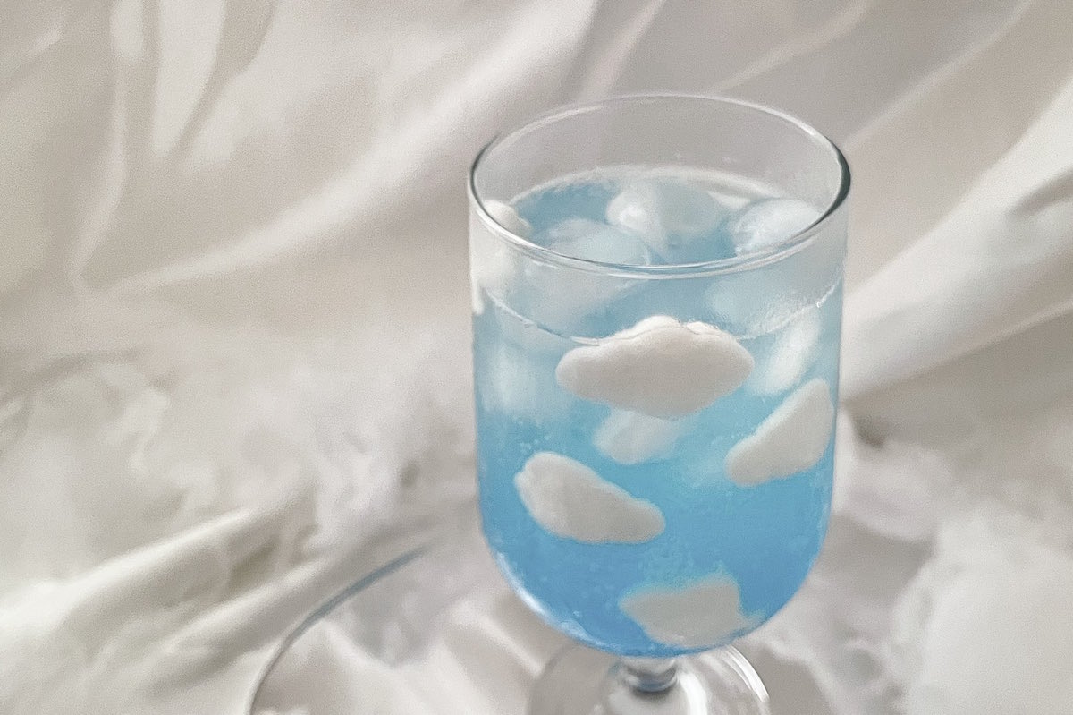 グラスに青空を閉じこめたお酒「あの日夢見た雲のホワイトサワー」 コンビニのグミで簡単に再現できるドリンクに「かわいい」「映えすぎ」と驚きの声