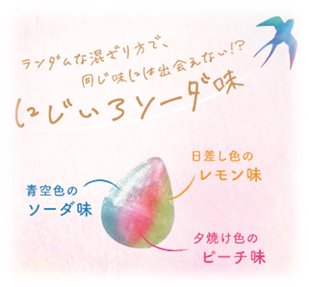 虹色の雨粒みたいなキャンディ「にじいろのアメ」新発売 1粒ずつ味わいが異なる“にじいろソーダ味”がきれいでおいしそう