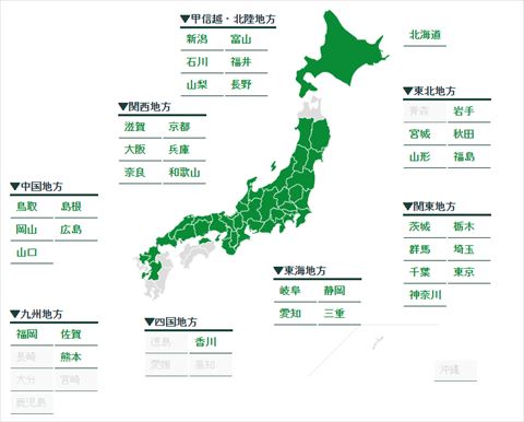 本州の全都道府県に出店