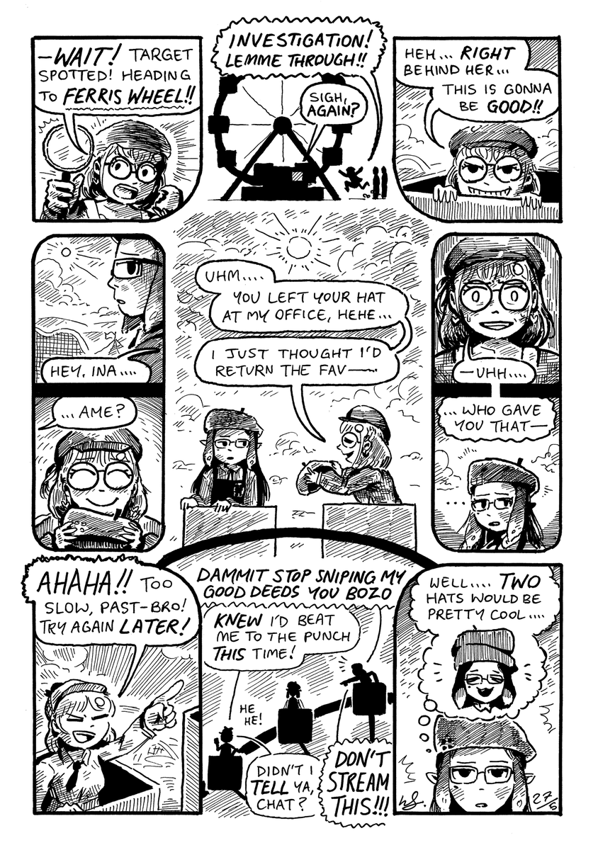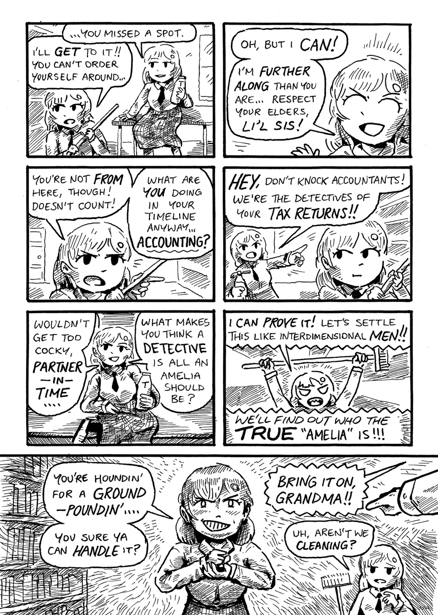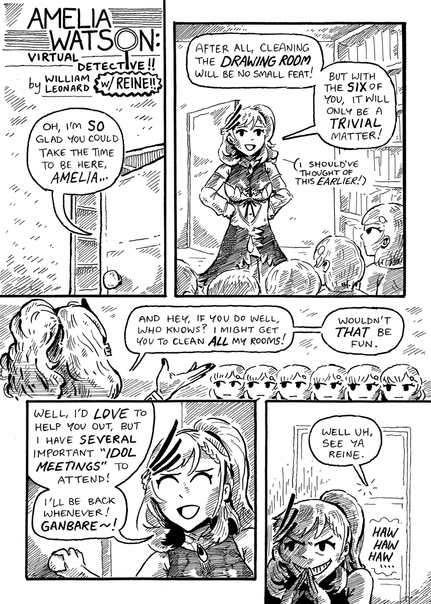 in this 3-PAGE edition of "vtuber comix", reine finds a time-travelling solution to all her housekeeping woes! but soon she learns why you can't leave too many amelias in the same room for long... #ameliaRT #Reinessance