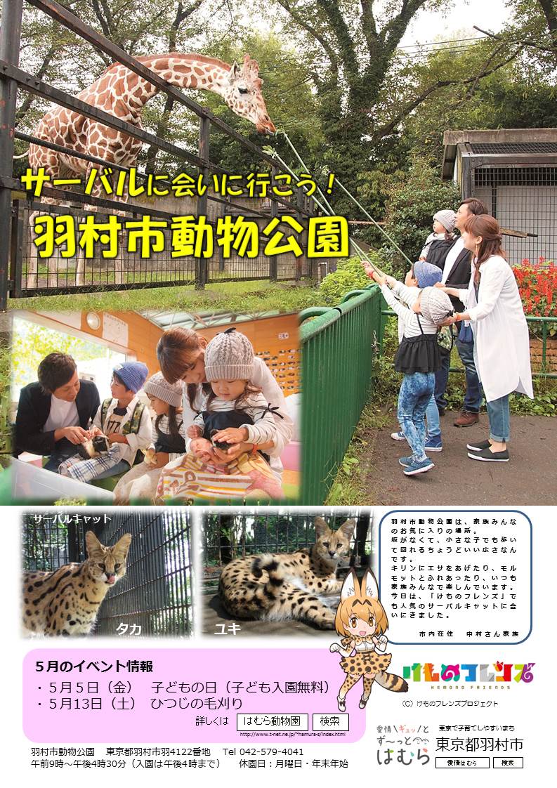 【動物公園NEWS】5月5日(こどもの日)、中学生以下のお子さんの入園料が無料になります!すごーい!けものフレンズで話題のサーバルキャットにも会えますよ~(o・ェ・)たのしー! #けものフレンズ