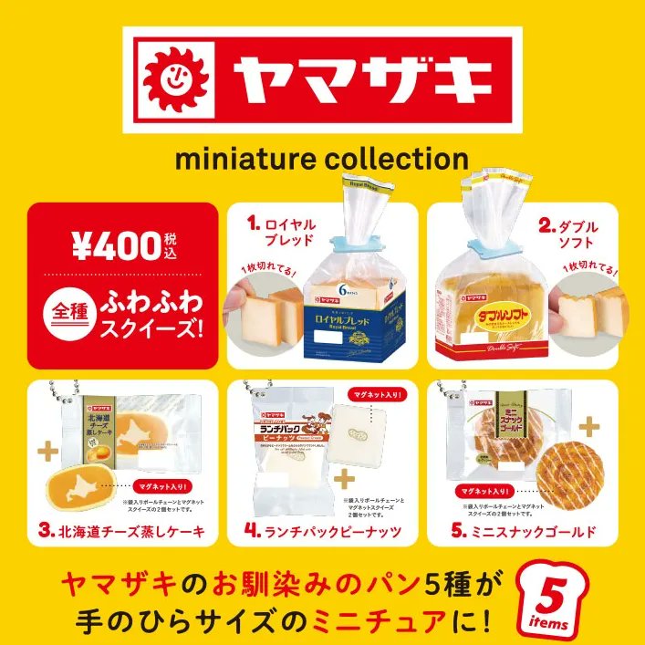 ヤマザキのお馴染みのパン5種が手のひらサイズのミニチュアに!