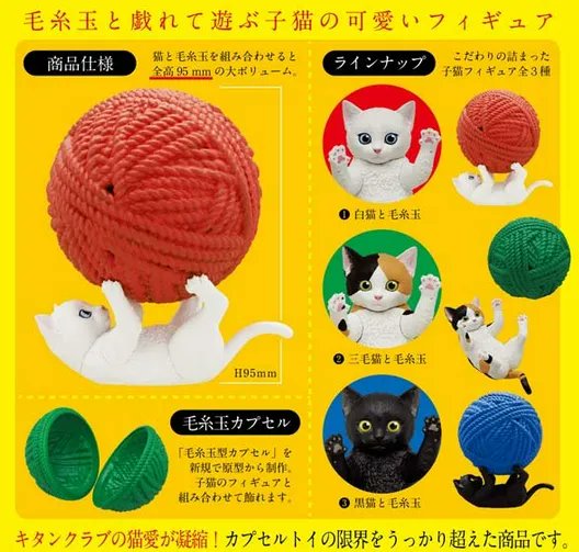 毛糸玉と戯れて遊ぶ子猫の可愛いフィギュア