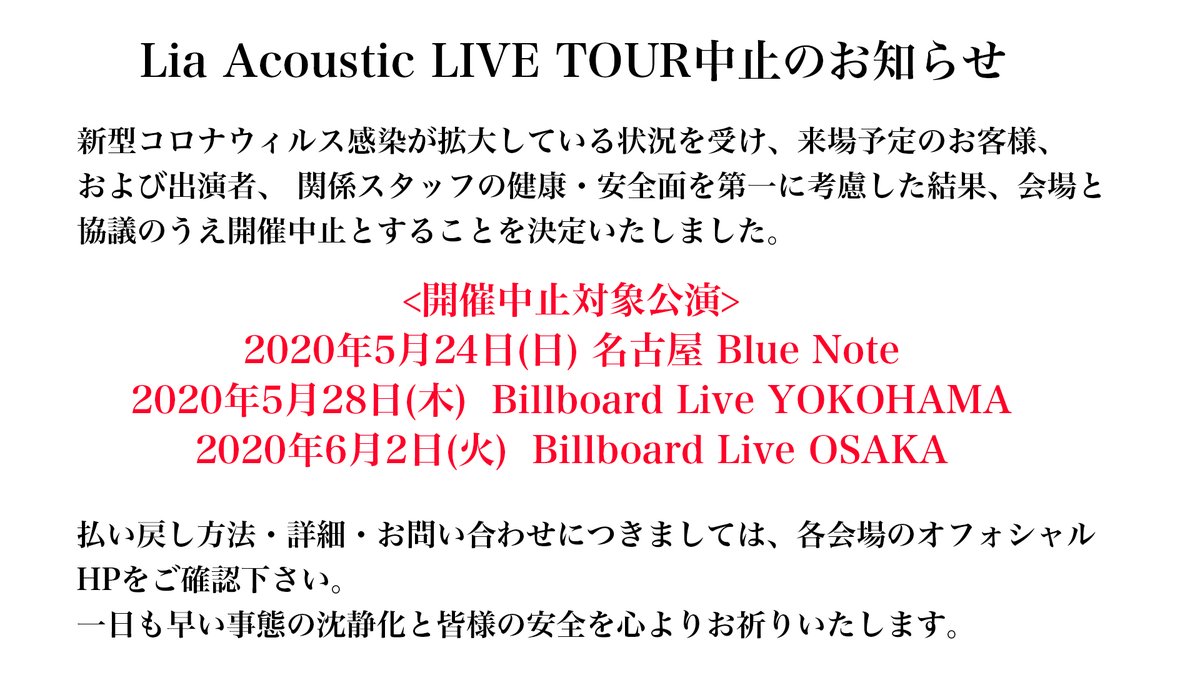 【Lia Acoustic LIVE TOUR中止のお知らせ】
