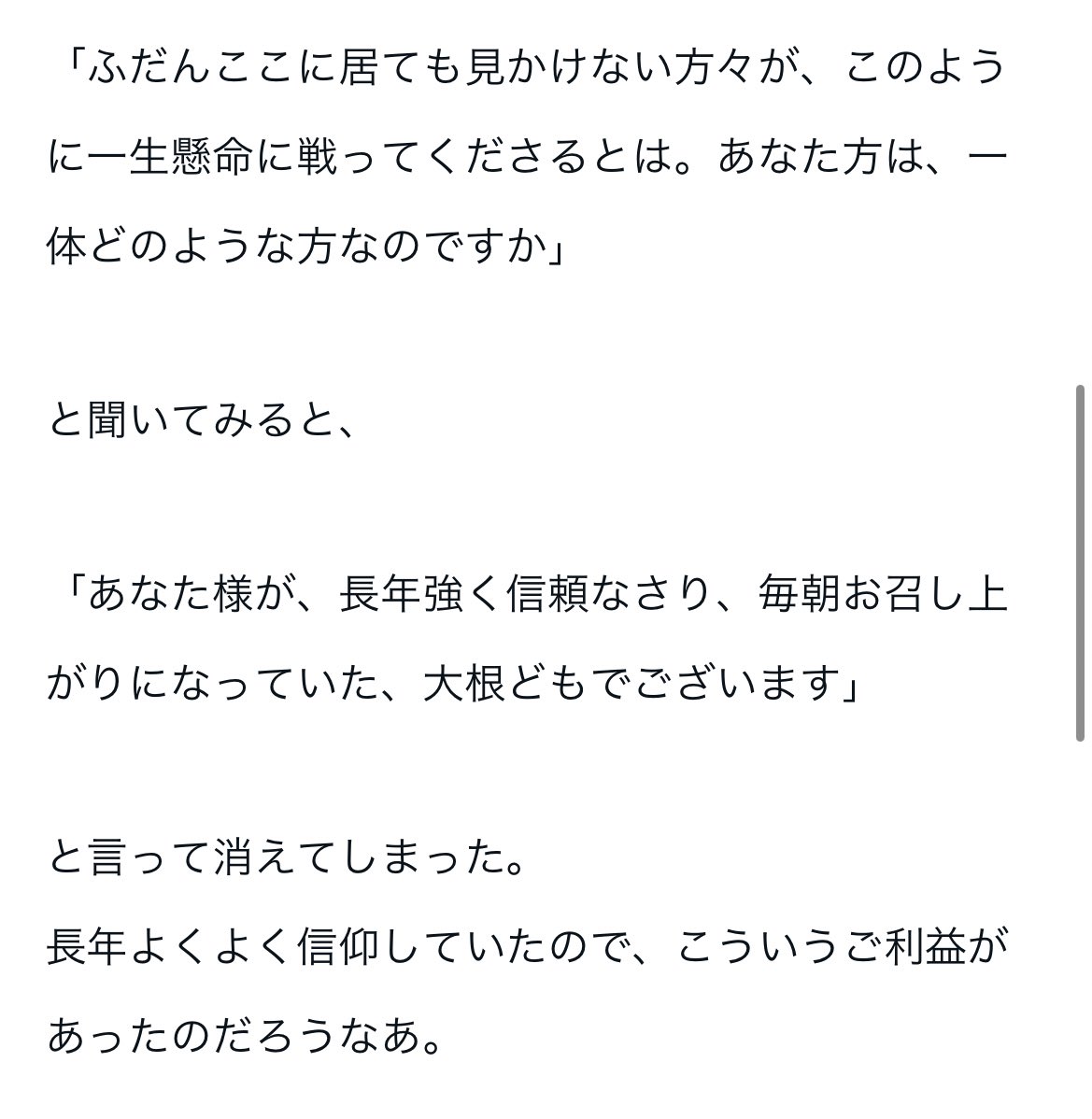 長年よくよく信仰していたので、こういうご利益があったのだろうなあじゃねえんだよ