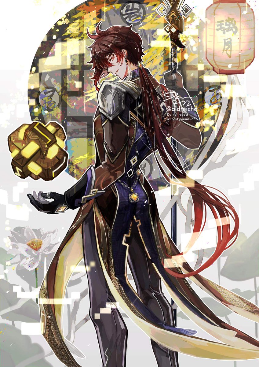 Drew Zhongli in Millelith like pose, as a honorable reference to the Millelith whom he fought alongside before in the Archon War, with lotus in background, which can be referral to Liyue as well as symbolism for strength and rebirth
