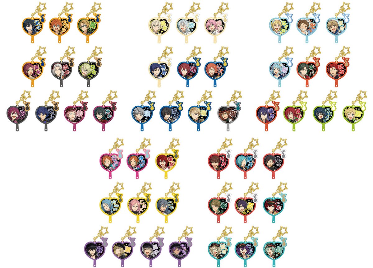 『あんさんぶるスターズ!!』フレフレうちわチャームコレクション j-hobby.net/ami/453940.html ミニサイズのハートうちわ型チャームが登場!ベースはラメ入り&半透明、裏面にはユニットロゴ入りです♪