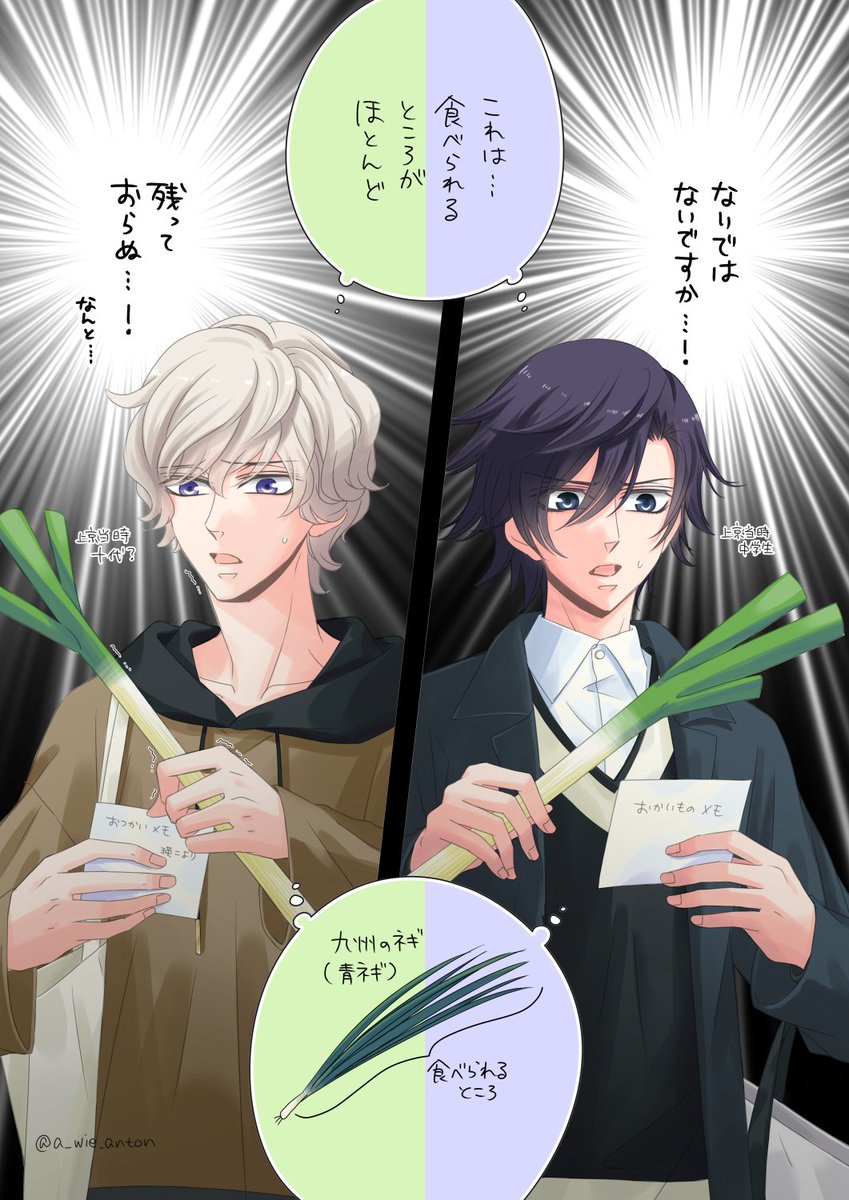 うたプリ 本州のネギとの出会い(トキヤとあまくさ) 天草パレス出身→来栖パレスへ移住の祖父に昔聞いたエピソードから。 もしかしたらトキヤとあまくさはこう思ったかもしれない? (今は全国どちらのネギも流通してそうだし、こういうことはないのかな)