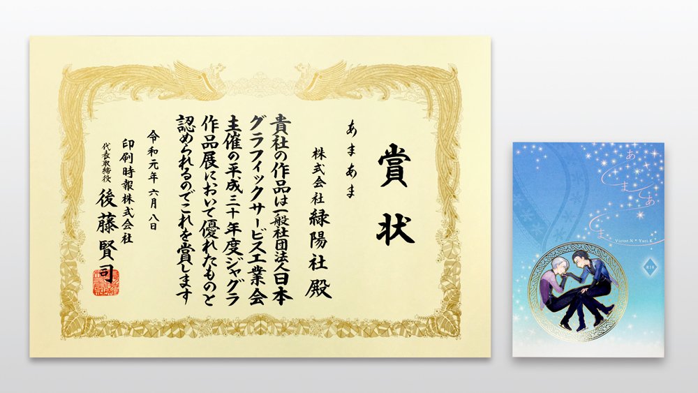 この度、弊社が製造した書籍『あまあま』が、優れた印刷技術を表彰する「ジャグラ作品展」にて出版印刷物部門“印刷時報株式会社賞”を受賞しました。