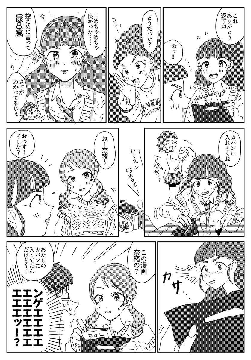 ユリユリから借りた漫画を間違えて加蓮のカバンに返してしまう奈緒の漫画です