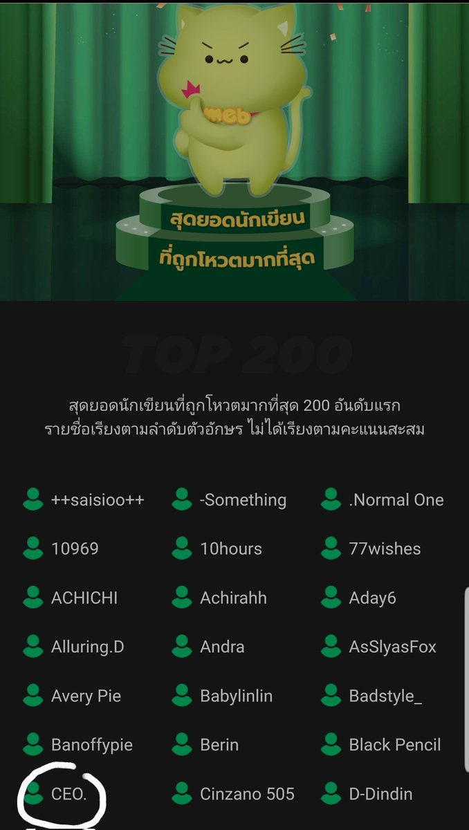 ติด200คนแรกด้วย ฮือออ ฝากโหวตด้วยนะคะปีนี้ แฮ่ๆ นามปากกา CEO.(มีจุดด้วยนะค้าบ) โหวตได้ถึงวันที่15กพ.น้าา ฝากตัวด้วยนะคับอีกปี~