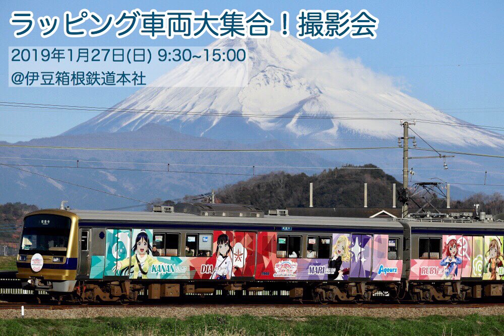 2019年1月27日(日)9:30〜15:00@伊豆箱根鉄道本社(静岡県三島市大場300/最寄り駅:大場駅)にて、ラッピング車両大集合!撮影会を行います☆「Over the Rainbow号🚃🌈」の記念乗車券も先行発売!その他NEWグッズも♩