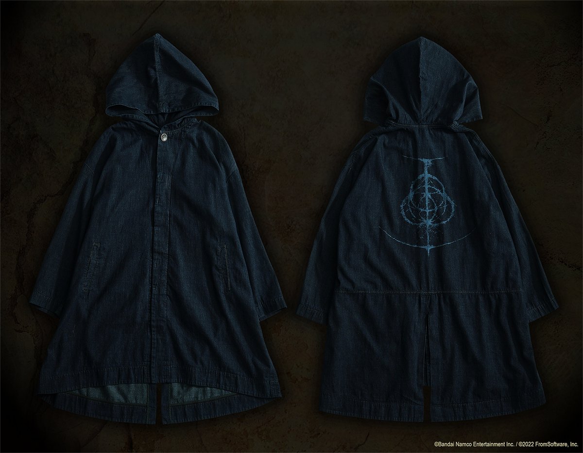 フード付きの「デニムコート」と「デニムシャツ」の2種がお披露目。伝統のデニム加工技術で青黒く深い色味を表現、ゲームの世界観を踏襲しつつも普段使いしやすいデザインに