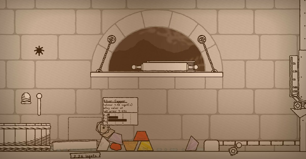 鉱石を砕いたりインゴットを錬成したり、依頼をこなしお金を稼ごう。50種類以上からなる合金を作成可能