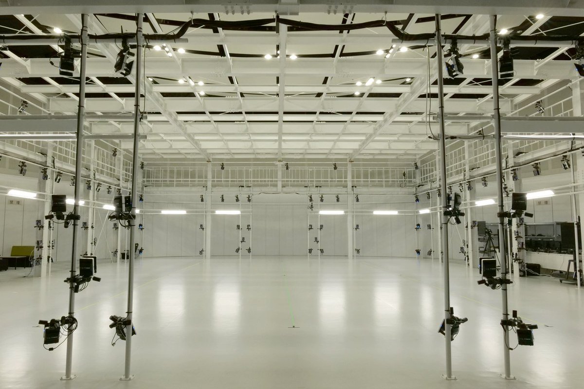 ふたつのモーションキャプチャースタジオを備えた最新鋭のスタジオ。最新型の超高解像度カメラを150台設置し、撮影密度を高めることで10人の同時収録やパフォーマンスを実現するという
