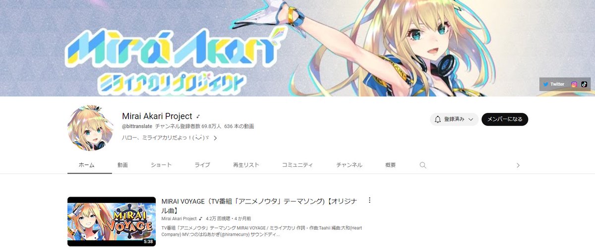 Vtuber「ミライアカリ」が3月31日をもって引退へ