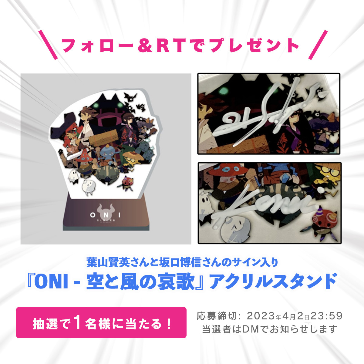 『ONI - 空と風の哀歌』ディレクター、葉山賢英さんと、その師匠といえる坂口博信さんのサイン入りアクリルスタンドを1名様にプレゼント