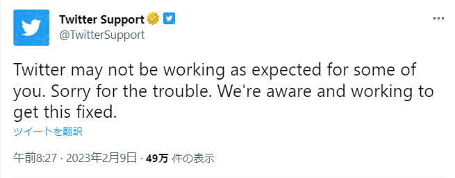 「ツイート送信の1日の制限回数を超えています」と表示されて投稿に失敗する不具合が確認されている。Twitter社は不具合のアナウンスをツイートし、現在修正中と発表