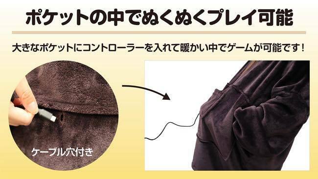 暖かさと機能性に徹底した室内用の防寒具。充電ケーブル用の穴がある大型ポケットでぬくぬくゲームをプレイしよう