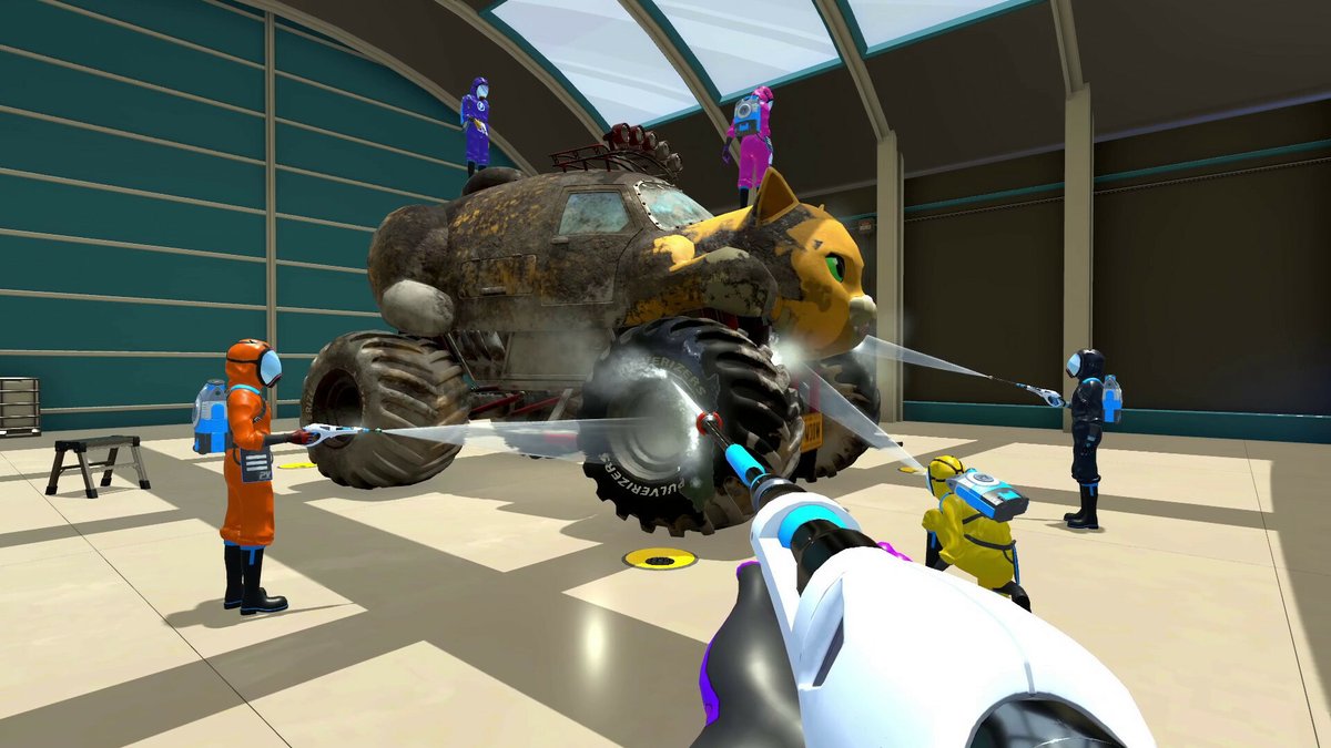 落書きや苔、カビなどをひたすら高圧洗浄機でピカピカにしていくシミュレーター。最大6名のフレンドとの洗浄で、悩みやモヤモヤを水に流そう。「観覧車」など新たな仕事も追加された