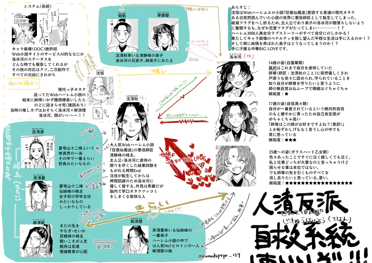 これは布教のために友人に送り付けたさはん相関図シートです。 人渣反派自救系統(さはん・svsss)はいいぞ!