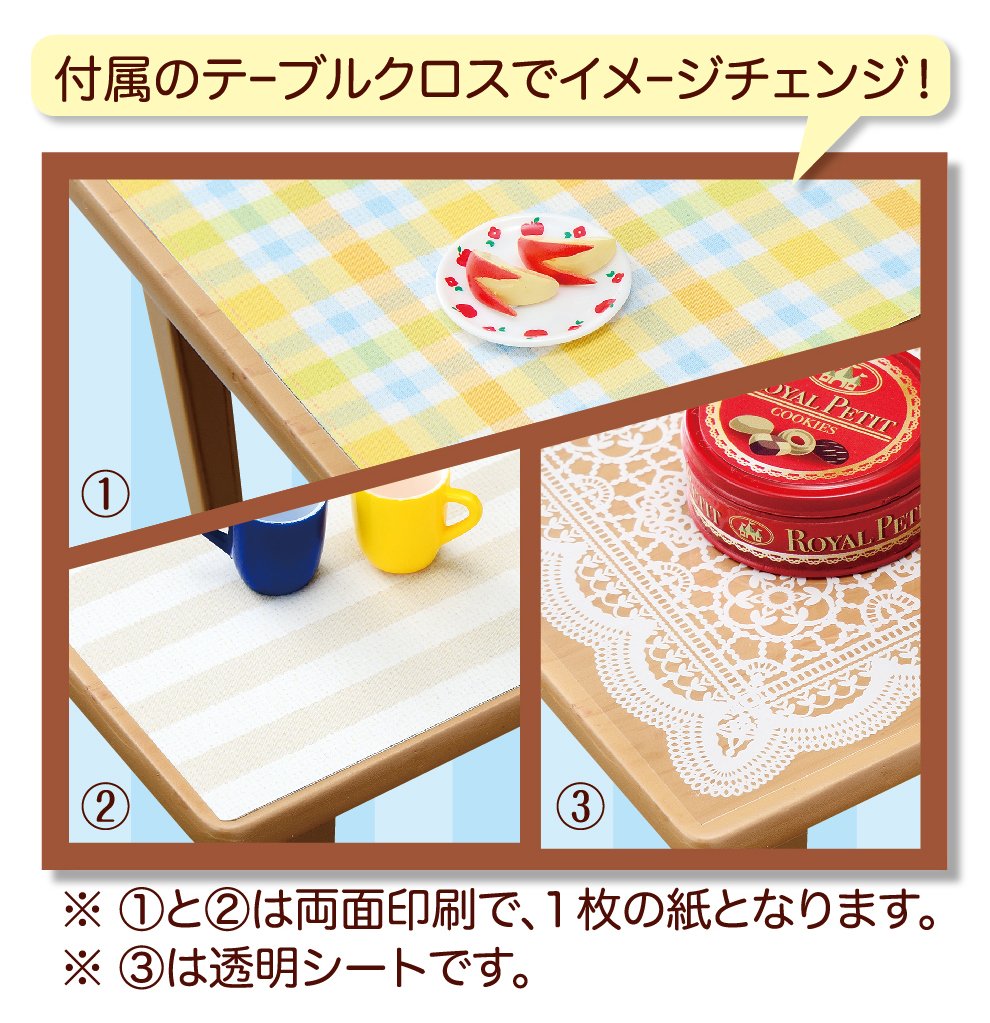 テーブルクロスは2枚付属☆今回はレース柄の透明シートを使ってぷちサンプルを並べてみました♪