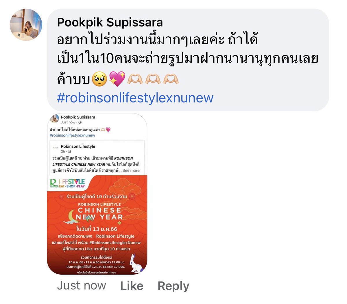 สวัสดีค่าเพื่อนๆพี่ๆน้องๆทุกคนฝากเข้าไปกดไลค์เม้นอันนี้ให้หน่อยนะคะ ถ้ากดไลค์ให้แล้วสามารถแคปแล้วเมนชั่นด้านล่าง สุ่มแจกเงิน500 4คนค่า อยากไปงานนี้มากๆแถวบ้านเลยย 😭🫶🏻💖 #robinsonlifestylexnunew #NuNew #NanaNu 🙏🏼💖