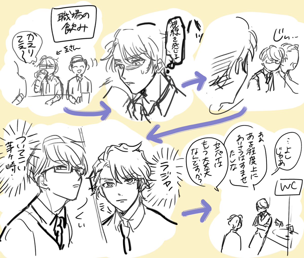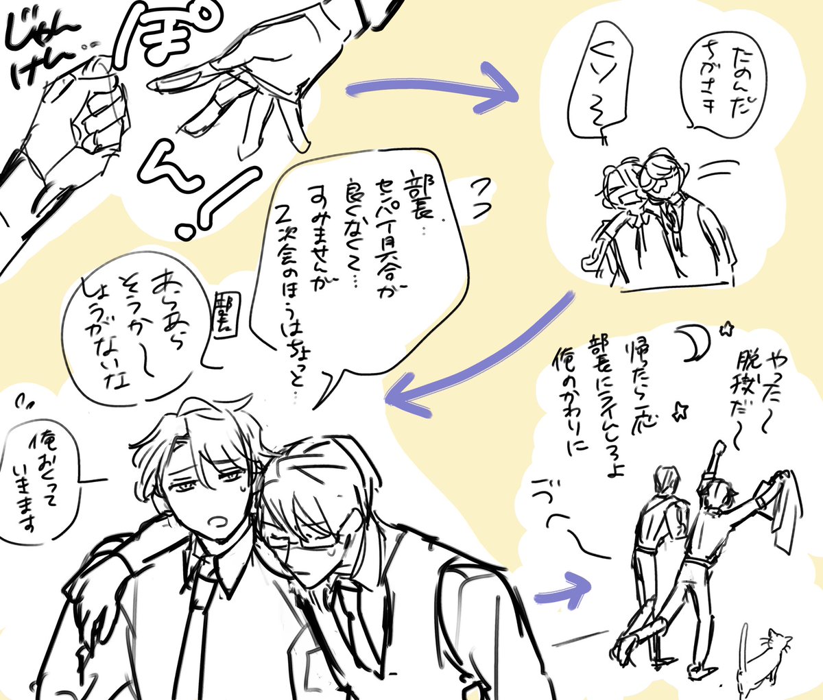 リーマンコンビ落書き 帰りたい飲み会でたまに使う作戦🍺
