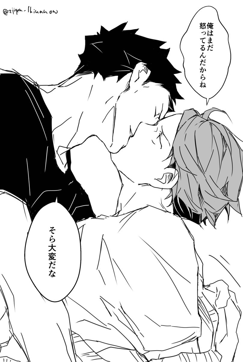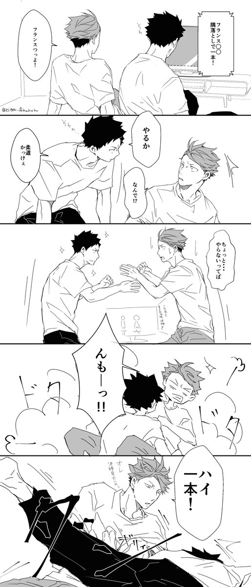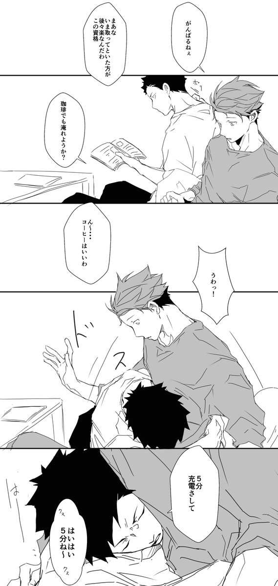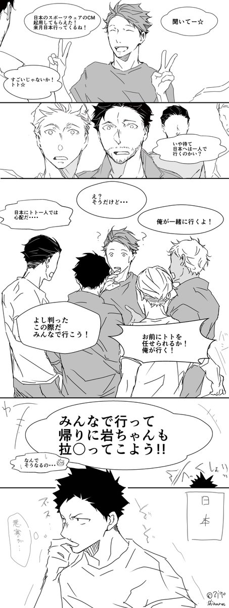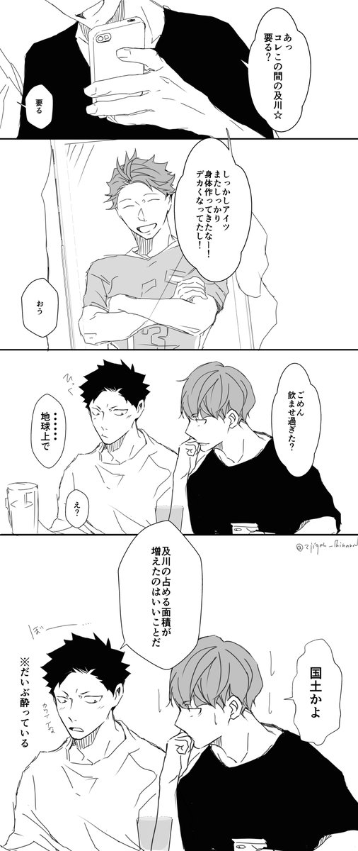 お互いにサインしあいっこじゃれあいになっちゃう岩及。みみさん @chococircus とお互いざっくり同じシチュで描きました☆+1.5hくらい