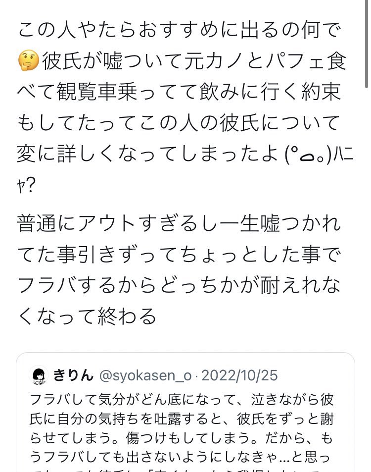 惚気垢の女って大抵女が重すぎて男から大事にされてない子多すぎて可哀想になる